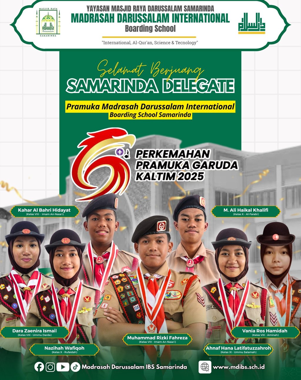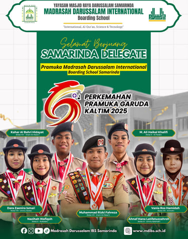 Pramuka Madrasah Darussalam International Boarding School Samarinda menjadi delegasi Kota Samarinda pada Perkemahan Pramuka Garuda Kalimantan Timur 2025 di Asrama Haji Batakan Balikpapan.