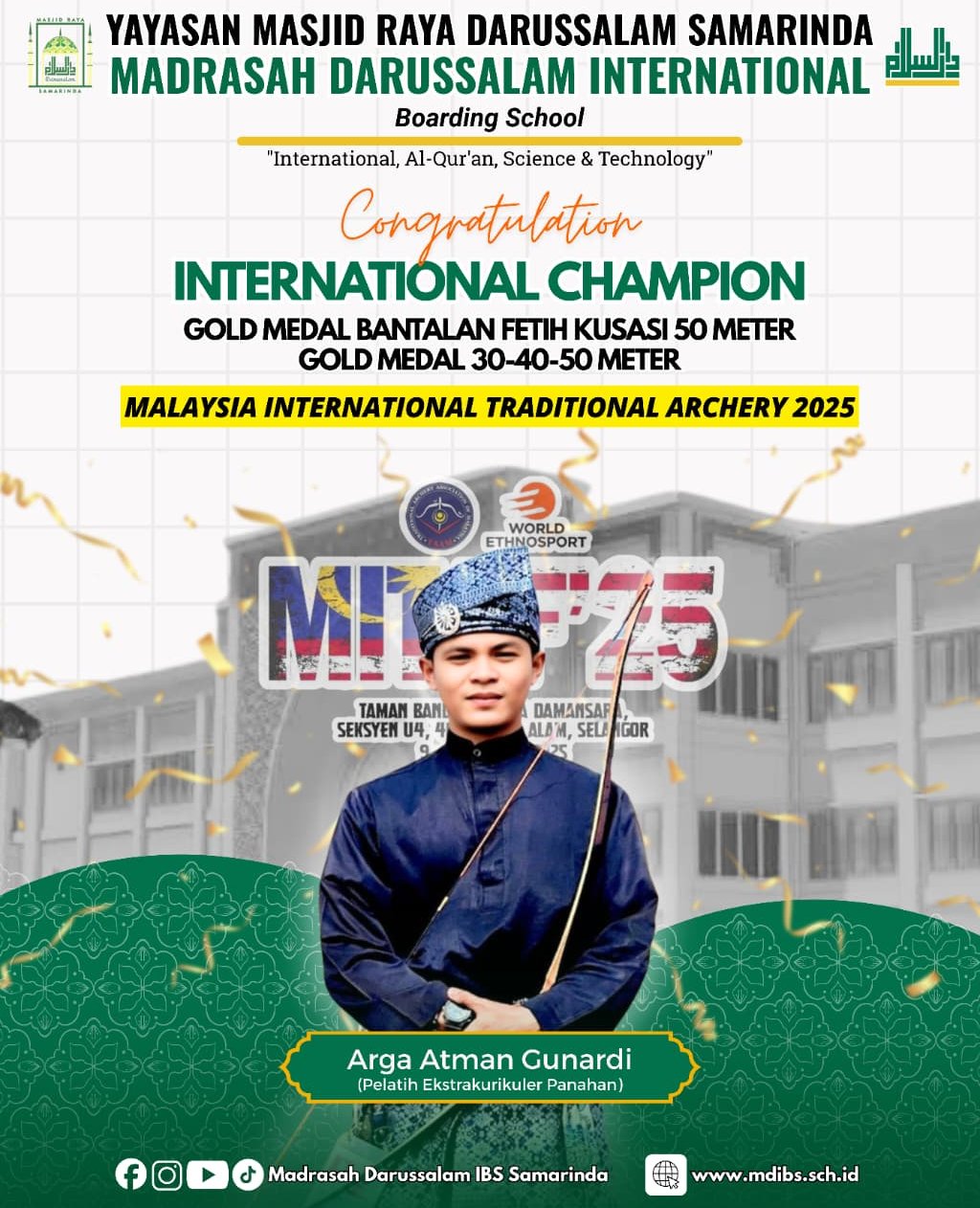 Keberhasilan ini bukan hanya kemenangan pribadi bagi Coach Arga, tetapi juga menjadi kebanggaan besar bagi Madrasah Darussalam IBS dan Indonesia.