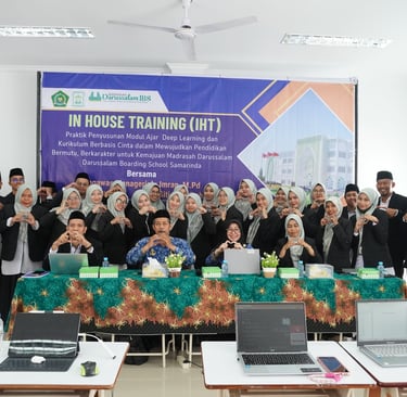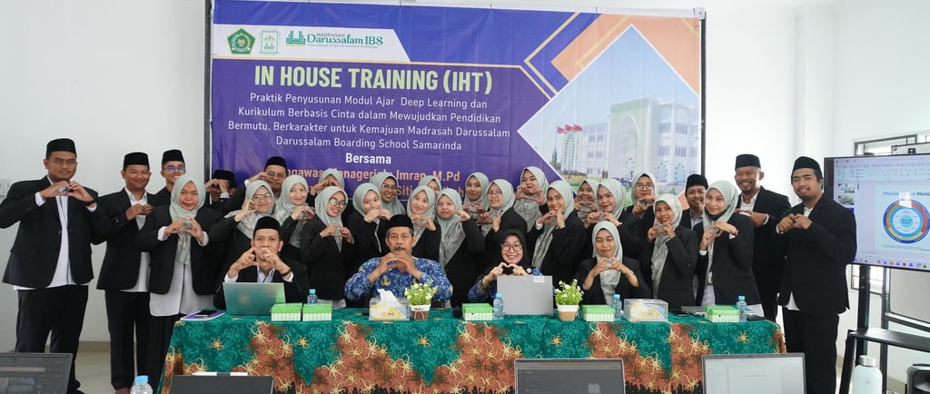 Madrasah Darussalam Boarding School Samarinda mengadakan In House Training (IHT) dengan Ibu Siti Djulaikah, M.Pd., membimbing guru praktik penyusunan modul ajar deep learning dan kurikulum berbasis cinta.