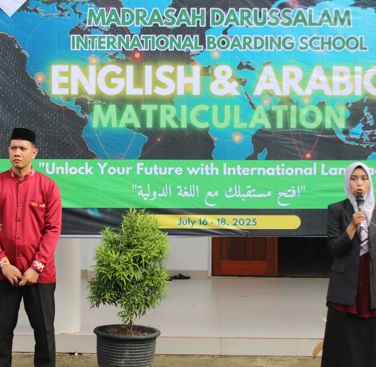 Madrasah Darussalam IBS menggelar Matriculation Bahasa Arab dan Inggris pada 16–18 Juli 2025. Program ini membekali santri baru dengan kemampuan dasar bahasa dan adaptasi lingkungan boarding school bilingual.