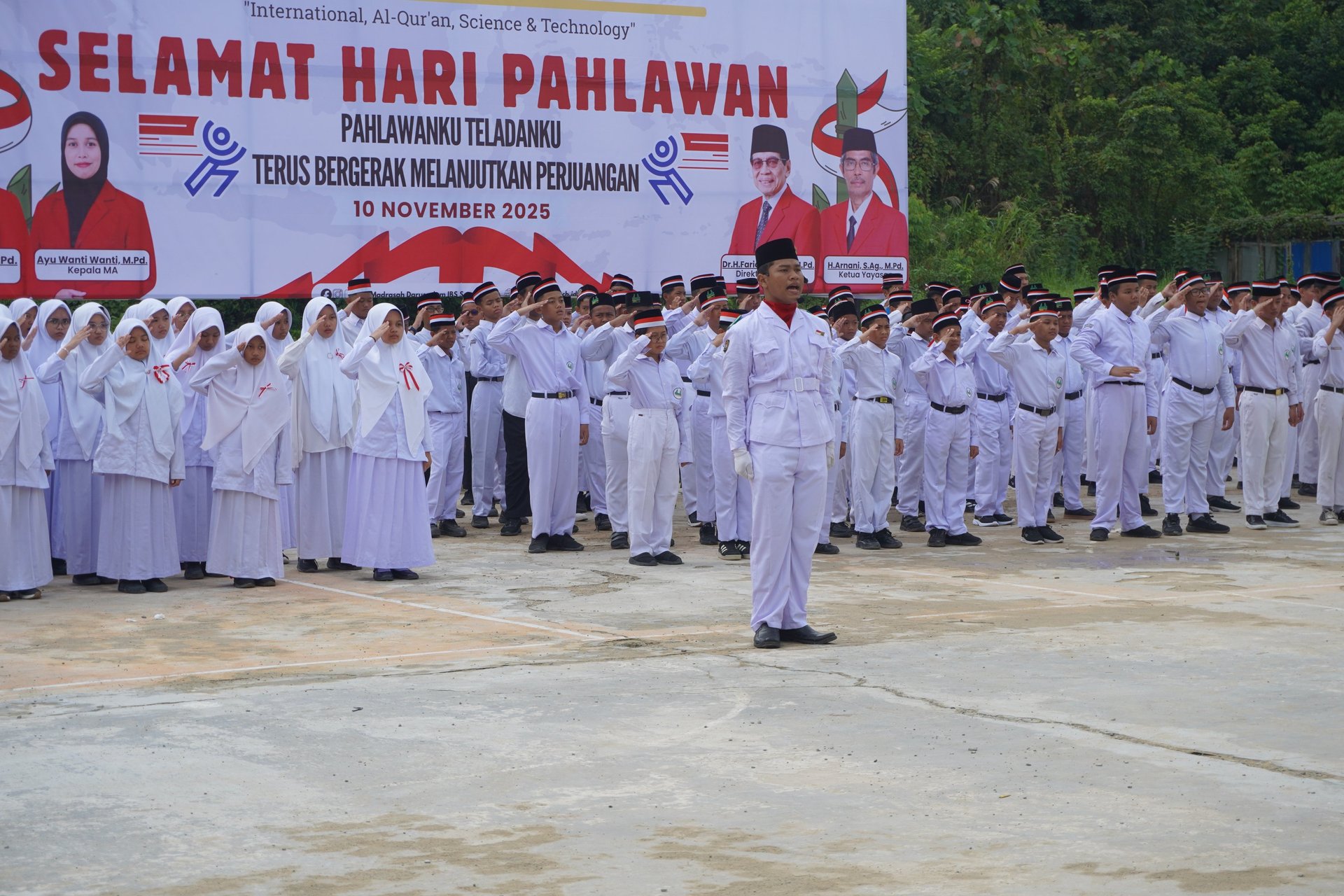 Madrasah Darussalam International Boarding School menggelar upacara Hari Pahlawan 10 November 2025. Upacara dipimpin Ketua Yayasan H. Arnani, M.Pd dan ditutup dengan pentas seni santri wati.