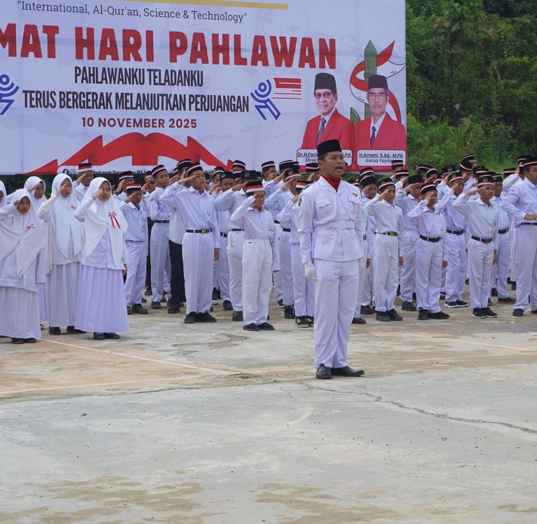 Mdibs.sch.id - Madrasah Darussalam International Boarding School (MDIBS) menggelar upacara peringatan Hari Pahlawan 10 November 2025 di halaman madrasah. Kegiatan ini diikuti oleh seluruh santri, tenaga pendidik, dan staf kependidikan sebagai wujud penghormatan dan refleksi atas jasa para pahlawan bangsa.