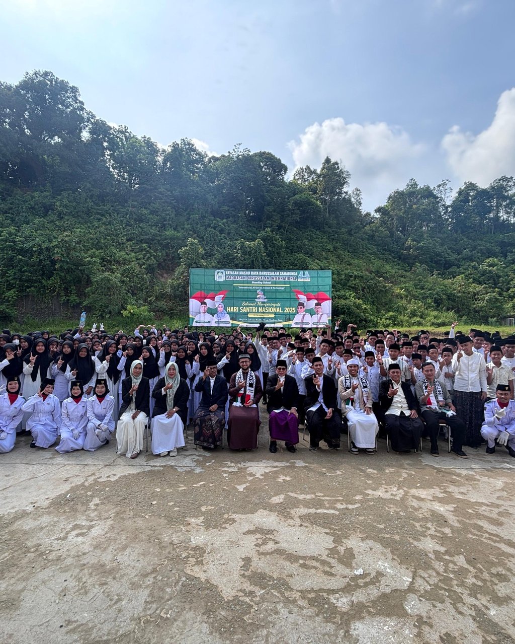 Madrasah Darussalam International Boarding School memperingati Hari Santri Nasional 2025 dengan apel bersama, busana putih, dan penampilan tari santri penuh semangat di lapangan madrasah.