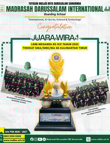 Mdibs.sch.id - Prestasi membanggakan datang dari MA Darussalam International Boarding School, yang berhasil meraih Juara 1 pada Lomba LKBB MEGANDA 2025 Ke-XIX Se-Kalimantan Timur. Kompetisi tersebut berlangsung di Politeknik Negeri Samarinda (Polnes) dan diikuti oleh tim-tim terbaik dari berbagai sekolah di wilayah Kalimantan Timur.